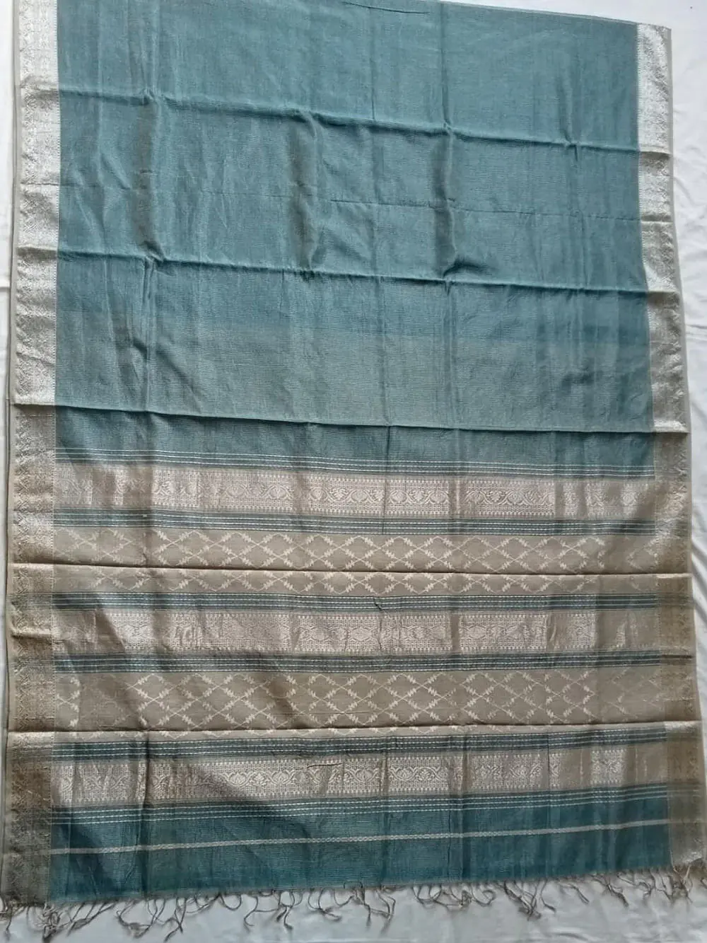 This handloom product of Kasrawad Art Cluster is woven by our registred weavers.Maheswari handloom Saree is a cotton and pure silk fabric woven with zari or brocade in varied designs. These designs include stripes, checks and floral borders. Originating from the town of Maheswar, Madhya Prades.
