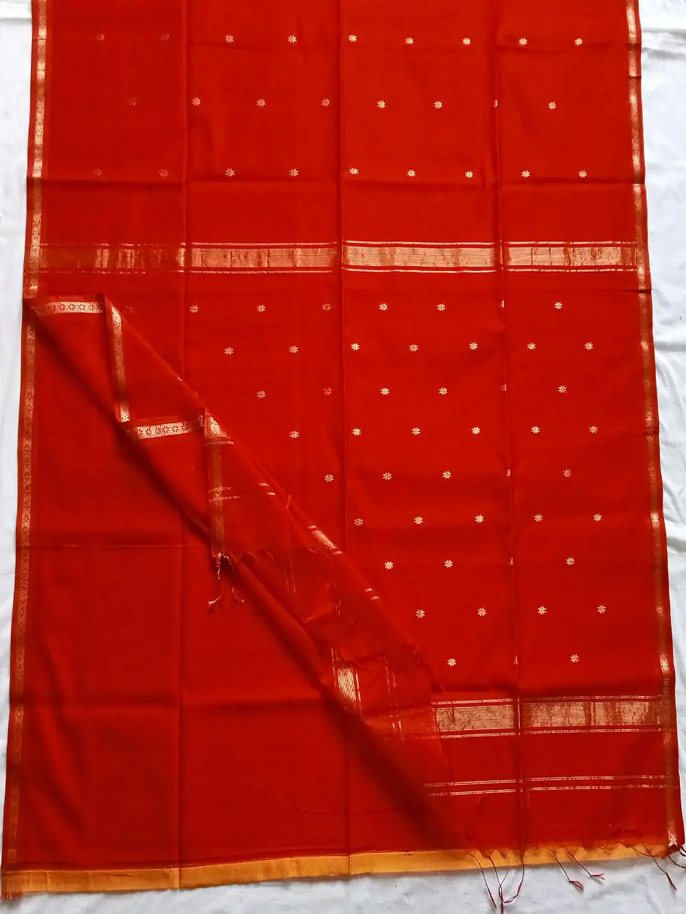 This handloom product of Kasrawad Art Cluster is woven by our registred weavers.Maheswari handloom Saree is a cotton and pure silk fabric woven with zari or brocade in varied designs. These designs include stripes, checks and floral borders. Originating from the town of Maheswar, Madhya Prades.